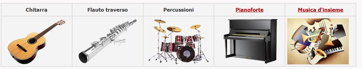 Le quattro specialità strumentali offerte dalla nostra scuola sono: pianoforte, chitarra, percussioni e flauto traverso.