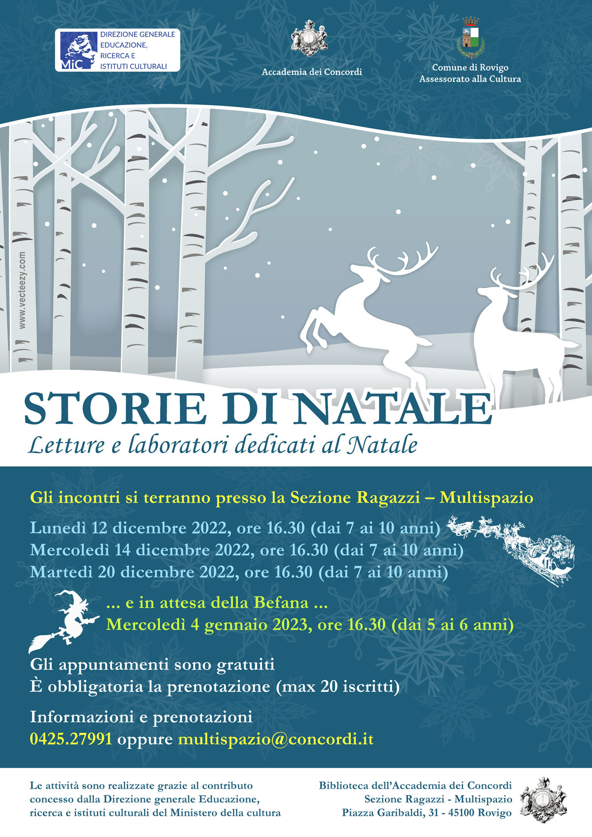 n occasione dell'avvicinarsi del Natale, la Sezione Ragazzi-Multispazio della Biblioteca dell'Accademia dei Concordi propone STORIE DI NATALE, Letture e laboratori dedicati al Natale.