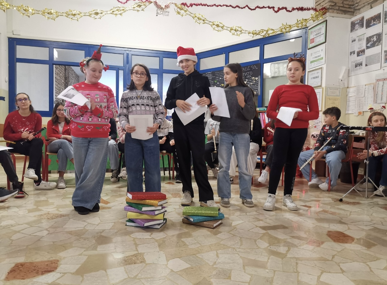 Nel plesso “Sante Zennaro”, l’evento si è trasformato in un vero e proprio spettacolo corale, che ha unito la consegna degli attestati di merito, alle esibizioni delle varie classi: la terza ha scaldato l’atmosfera con musica e canti natalizi, la seconda ha emozionato il pubblico con una coinvolgente lettura animata, mentre i ragazzi di prima hanno sorpreso tutti con un dono speciale realizzato con le loro mani, regalando così un momento di gioia, emozione e condivisione a tutta la scuola.