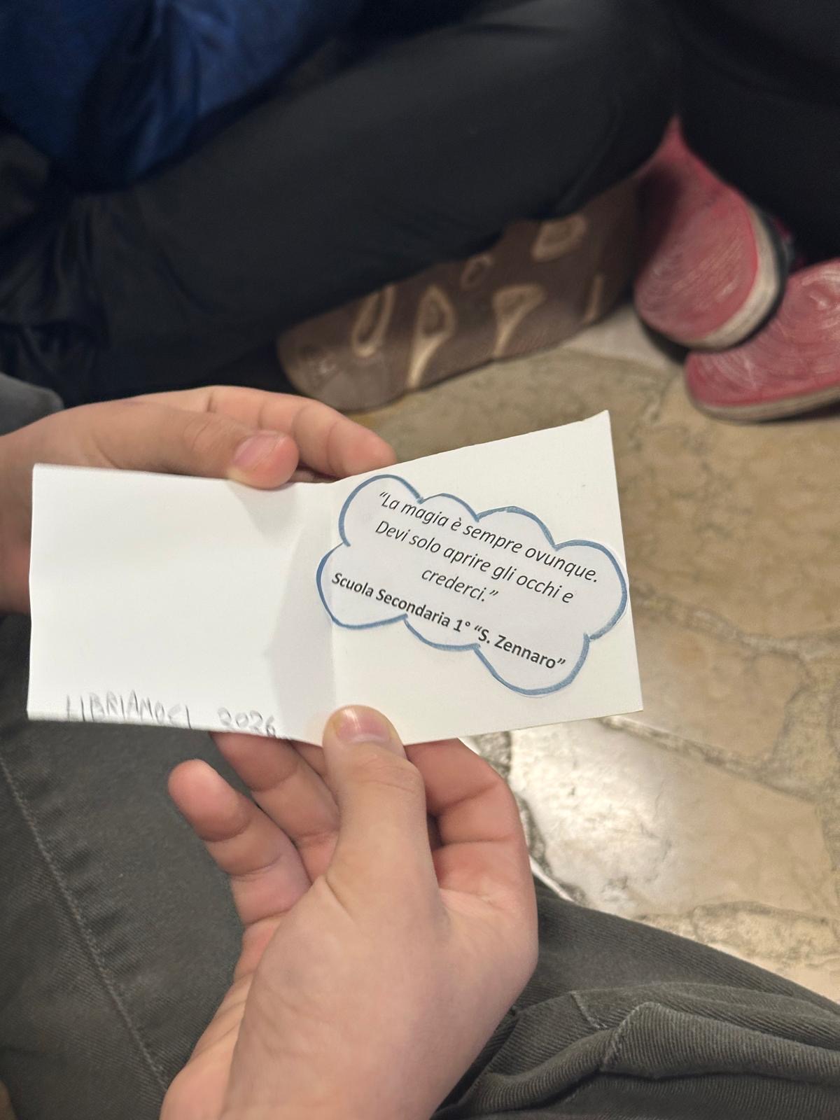Al termine delle letture, gli studenti della secondaria hanno donato ai più piccoli dei bigliettini a forma di goccia, contenenti pensieri preziosi da custodire e portare con sé.
