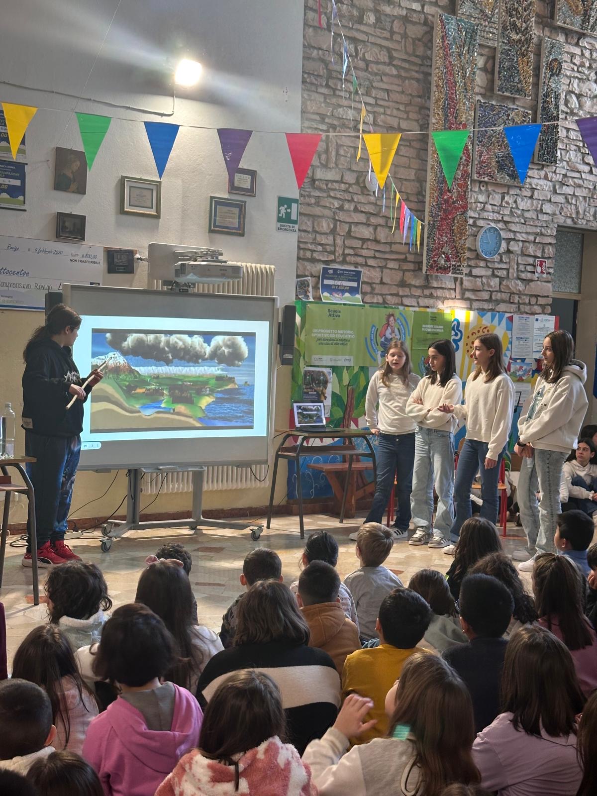 Proprio prendendo spunto dalla neve del racconto, si è realizzato un prezioso momento di continuità tra ordini di scuola. I ragazzi della scuola secondaria di primo grado hanno guidato i bambini della primaria alla scoperta del ciclo dell’acqua, trasformando la letteratura in un ponte verso la scienza attraverso spiegazioni semplici e coinvolgenti ed esperimenti pratici. Un esempio concreto di didattica attiva e collaborativa, in cui i più grandi hanno assunto il ruolo di “piccoli insegnanti”, rafforzando le proprie competenze e sviluppando senso di responsabilità, mentre i più piccoli hanno appreso attraverso il racconto e l’osservazione.