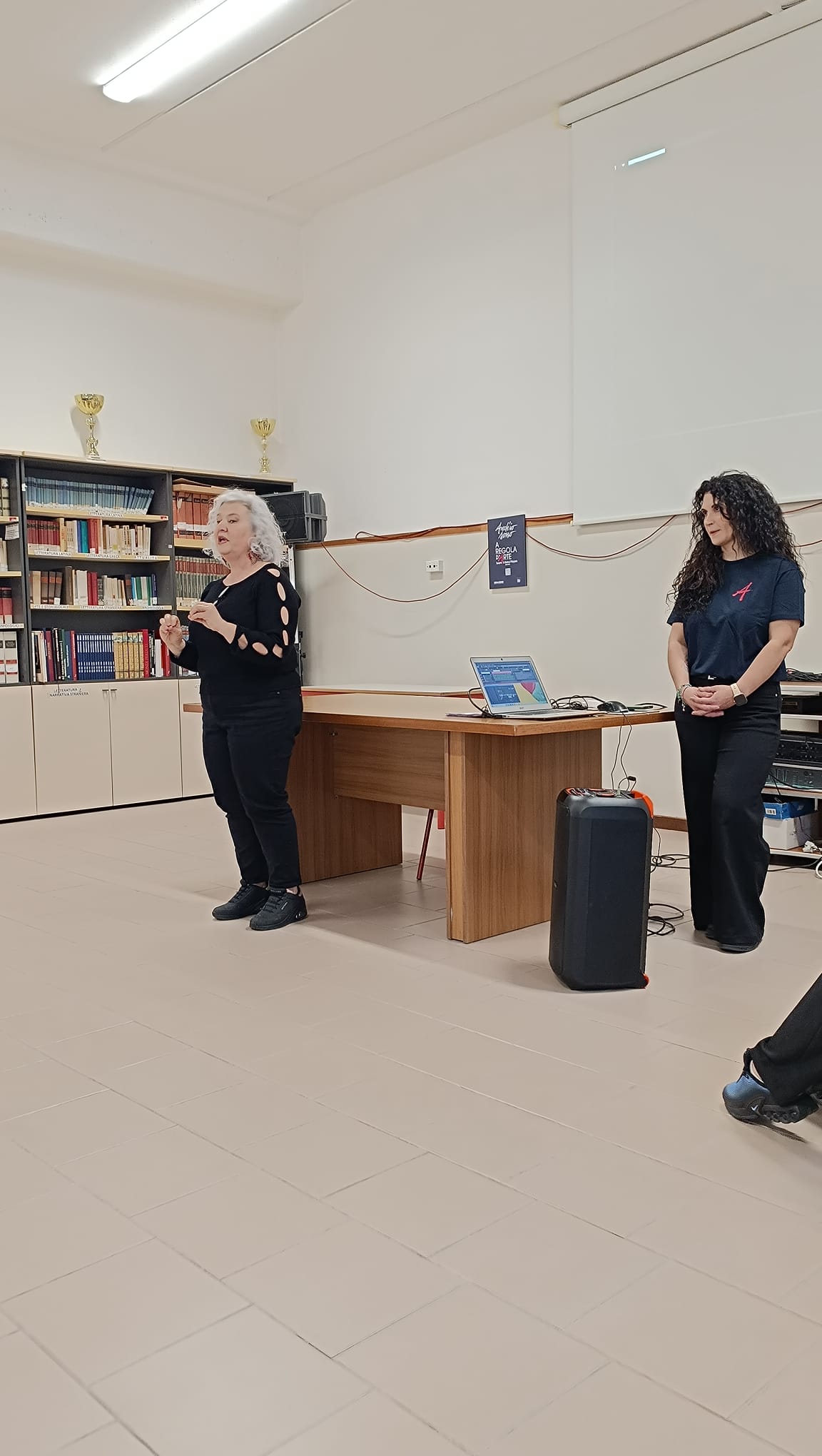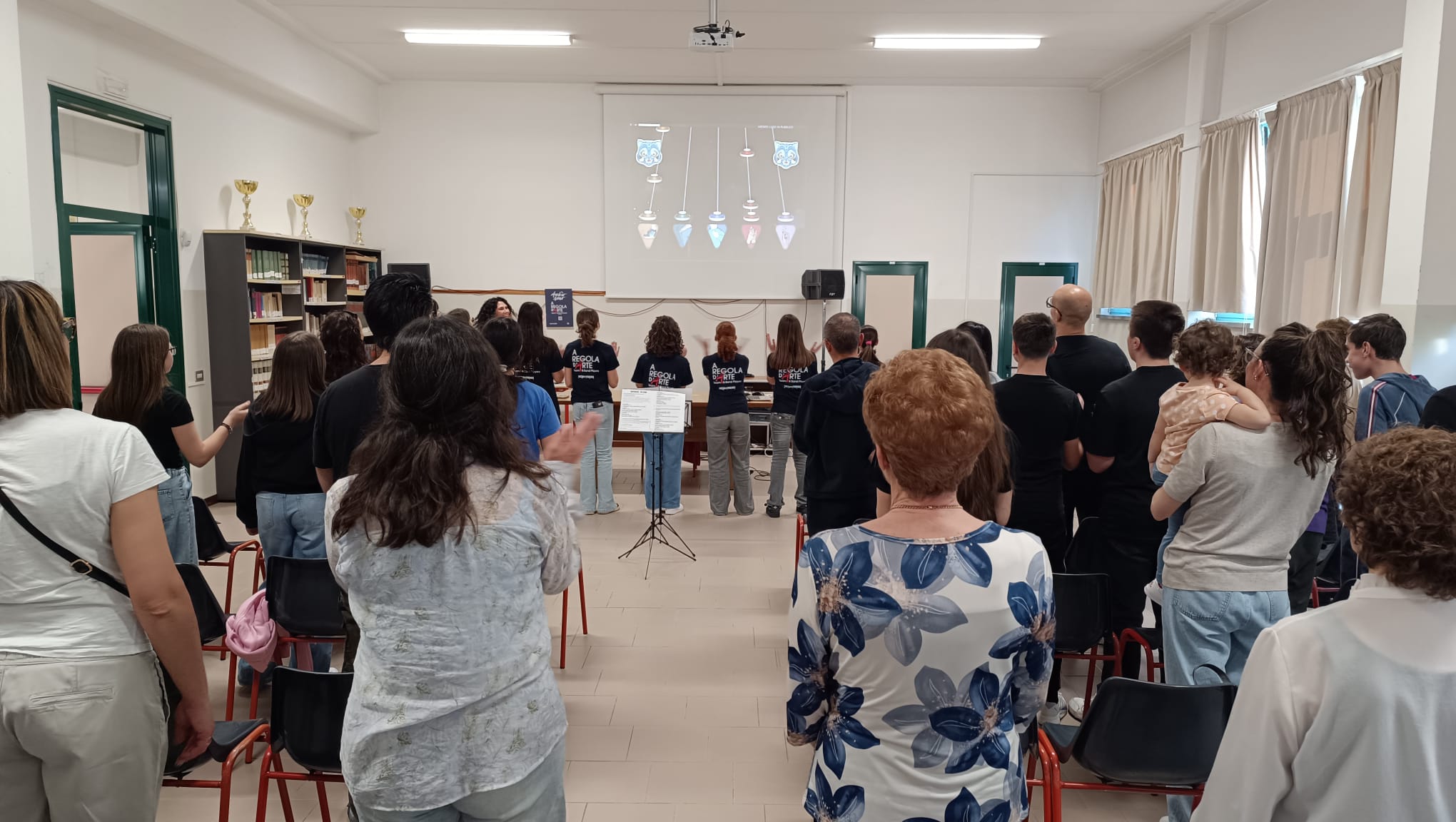 La restituzione finale ha rappresentato il momento conclusivo del progetto e ha visto i ragazzi protagonisti davanti al pubblico: sono stati interpretati brani molto conosciuti come Supereroi di Mr. Rain e Ci sono anch’io di Max Pezzali, che hanno coinvolto emotivamente il pubblico. Uno dei momenti più partecipati è stato l’esercizio di musica e coordinazione realizzato sulle note di Golden, brano tratto dal film d’animazione K-Pop Demon Hunters, particolarmente apprezzato dai più giovani. L’attività ha suscitato entusiasmo e divertimento.